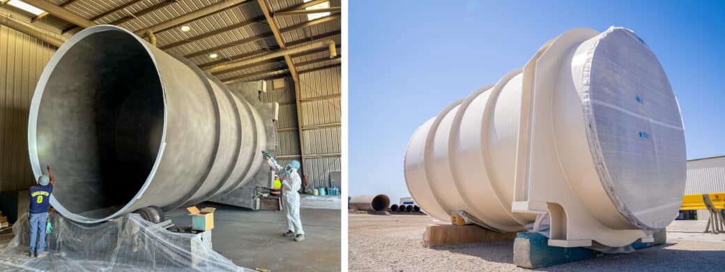 168-inch penstock before and after coating.