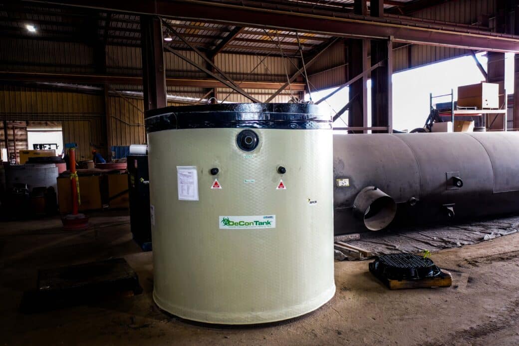 The NWPX DeconTank® is constructed of durable reinforced concrete with a single (interior) or double (interior/exterior) HDPE liner for added protection against aggressive chemicals. High-level sensors and alarm systems support safe operation and controlled management of contaminated wastewater.