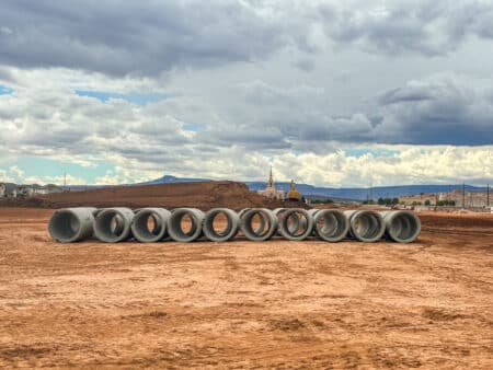 This 34-foot span concrete bridge improves drainage and fish passage in Utah’s Dixie National Forest, while providing a safe road crossing for recreation users. Geneva Pipe and Precast supplied approximately 250 tons of precast components—including three-sided boxes, headwalls, wingwalls, and footings—to support efficient construction with minimal disruption to public access.