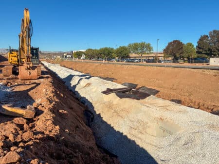 The Merrill Road Widening and Utilities project includes pavement reconstruction and widening of Merrill Road from 3000 East to Harvest Lane in a developing area of St. George, Utah. The project expands Merrill Road from two to five lanes, and along with it the below-ground stormwater drainage system and sanitary sewer utilities needed to support current and future traffic demands around the Paseo commercial development.